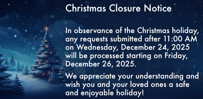 Requests received before 4 pm, Monday through Friday, will receive a same-day response. Requests received after 4 pm, on weekends or holidays will receive a response the next business day.